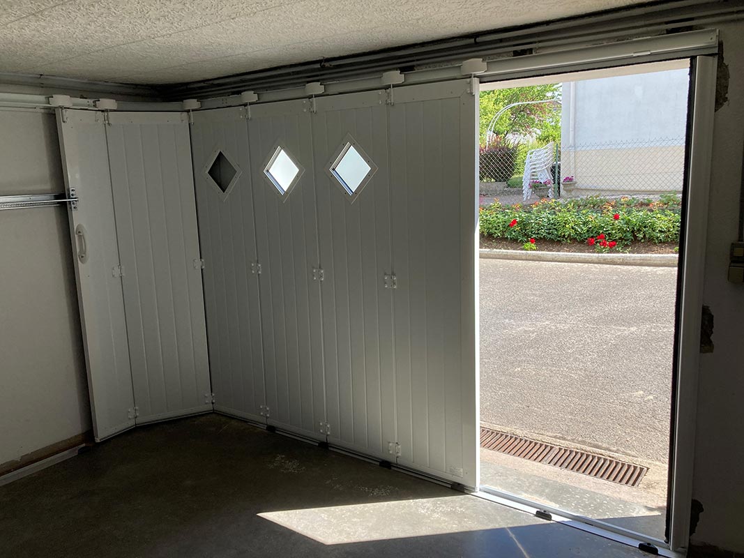 • Portes sectionnelles ; un système d’ouverture plaquant votre porte de garage vers l’intérieur, sur l’un des pans de mur.